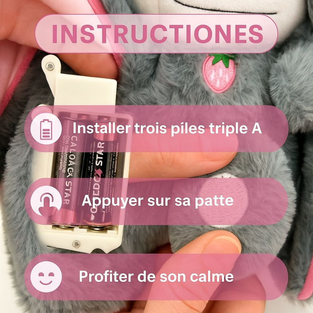 La peluche est équipée d’un système interne simple et facile à utiliser, pensé pour un usage quotidien sans complication. Il suffit de l’activer pour profiter de son effet apaisant.